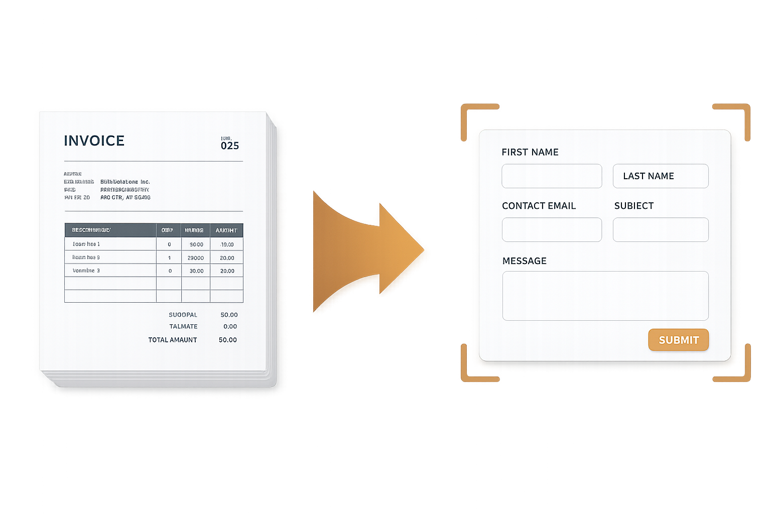업로드된 문서를 OCR로 정밀 추출하고, 폼 구조를 그대로 복원하여 업무 시스템에 연결합니다.